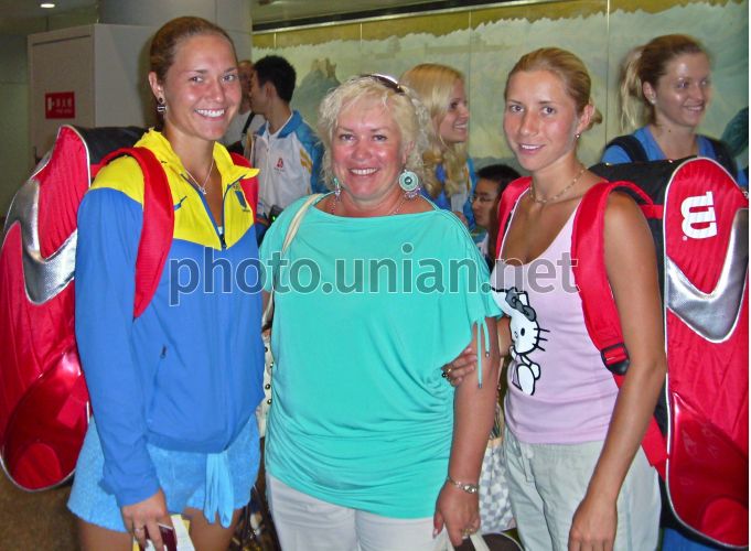 Спортсменки Екатерина, слева, и Алена Бондаренко с мамой в Пекине (Китай) после прибытия на Олимпиаду в среду, 6 августа 2008 г. ХXІХ летние Олимпийские игры пройдут в Пекине, Китай 8-24 августа 2008 г. На Олимпиаде будут разыграны 302 комплекта наград. Национальная сборная команда Украины будет представлена в 28 видах спорта. Фото УНИАН