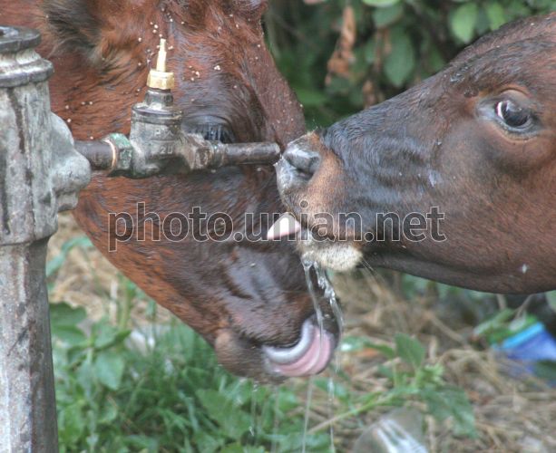 Телята пьют воду