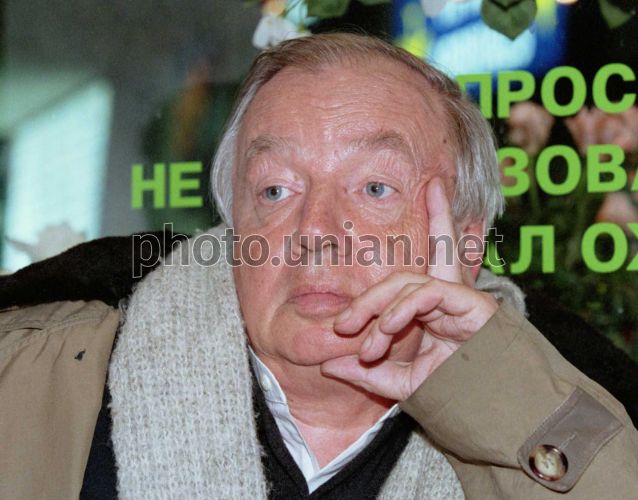 Только что прибывший в Украину знаменитый русский поэт Андрей Вознесенский отвечает на вопросы журналистов в киевском аэропорту Борисполь в субботу, 19 февраля 2000 г. Вечером того же дня Вознесенский встретился с киевскими любителями поэзии на своем творческом вечере. Вознесенский родился в Москве в 1933 году. Из одного двора с Андреем Тарковским. В 1957 году окончил Московский архитектурный институт. По словам Евгения Евтушенко: "Он не вошел в поэзию, а взорвался в ней, как салютная гроздь, рассыпаясь разноцветными метафорами. ...Генезис его поэтики - это синкопы американского джаза, смешанные с русским переплясом, цветаевские ритмы и кирсановские рифмы, логически-конструктивное мышление архитектора-профессионала: коктейль, казалось бы, несовместимый. Но все это вместе и стало уникальным поэтическим явлением, которое мы называем одним словом: "Вознесенский" ... Во главу угла он поставил метафору, назвав ее "мотором формы". Катаев назвал поэзию Вознесенского "депо метафор". После Маяковского в русской поэзии не было такой метафорической Ниагары... Вознесенский был одним из первых поэтов нашего поколения, кто "прорубил окно в Европу" и в Америку, выступая с поэтическими чтениями... В 1963 году на встрече с интеллигенцией в Кремле Хрущев подверг Вознесенского всяческим оскорблениям, крича ему: "Забирайте ваш паспорт и убирайтесь вон, господин Вознесенский!". Перу Вознесенского принадлежат многие эссе, где он рассказывает о своих встречах с Генри Муром, Пикассо, Сартром и другими крупными художниками XX века. Фото Сергея Давыдкова/ УНИАН