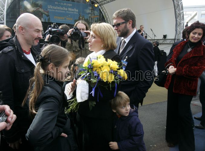 Председатель Наблюдательного совета Международного благотворительного фонда «Украина 3000», супруга Президента Украины Екатерина Ющенко, в центре, со своими детьми Кристиной, Софией и Тарасом и вокалист фолк-рок группы ”Гайдамаки” Александр Ярмола, слева, в Европа-Парке, в г. Лар, Германия, в воскресенье, 5 октября 2008 г. Фонд «Украина 3000» организовал поездку в Европа-Парк группы детей погибших украинских шахтеров. 25 детей в возрасте от 8 до 15 лет из Кировоградской, Донецкой, Львовской, Днепропетровской и Луганской областей будут находиться в Европа-Парке с 1 по 7 октября 2008 г. Культурно-развлекательная программа для детей включает обзор Европа-Парка, экскурсионные поездки, участие в мероприятиях «Дней Украины». Европа-Парк является одним из наиболее известных и успешных тематических парков развлечений в Европе. На площади 85 гектаров представлена культура и традиции 12 стран Европы. Парк находится на расстоянии 35 км. от Страсбурга, на границе Германии, Франции и Швейцарии. В арсенале парка - около 100 тематических аттракционов и разнообразных шоу, в программах принимают участие около 150 артистов из 22 стран. Фото Михаила Маркива / POOL / УНИАН