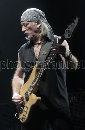 Басист легендарной британской рок-группы ”Deep Purple” Роджер Гловер во время концерта, в Киеве, в среду, 15 октября в 2008 г. Рок-группа ”Deep Purple” играет в стилях хард-рок и хэви-металл. Группа была образована в 1968 году под названием Roundabout. В апреле того же года название было изменено на Deep Purple. Deep Purple считается основоположниками хард-рока. Фото УНИАН
