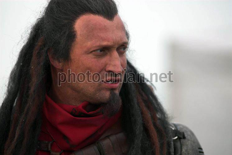 FILE Российский актер Гоша Куценко (Вепрь) в кадре из фильма ”Обитаемый остров” Федора Бондарчука по одноименному роману Аркадия и Бориса Стругацких 1968 года, во время съемок фильма в Крыму, в воскресенье, 7 октября 2007 г. Действие фильма разворачивается в 2157 году. Двадцатилетний студент с планеты Земля, путешествуя по галактике, открывает новую планету – Саракш. Потерпев крушение и потеряв шанс вернуться назад, Максим (Василий Степанов) оказывается в неизвестной и совершенно непонятной ему цивилизации. Из прекрасного будущего, свободного и безопасного Мира Полудня, он возвращается в тоталитарную эпоху, даже о возможности которой современники Максима успели забыть. Из благополучного мира воплощенной утопии – попадает на искалеченную ядерной катастрофой планету, где живо прошлое во всех его уродливых чертах: военная диктатура, зомбирование нации, искажение понятий, дезинформация и тотальный контроль. Бюджет картины - $36,5 млн. Премьера первой части дилогии состоится 18 декабря 2008 г. Фото предоставлено компанией ”Гемини” / УНИАН