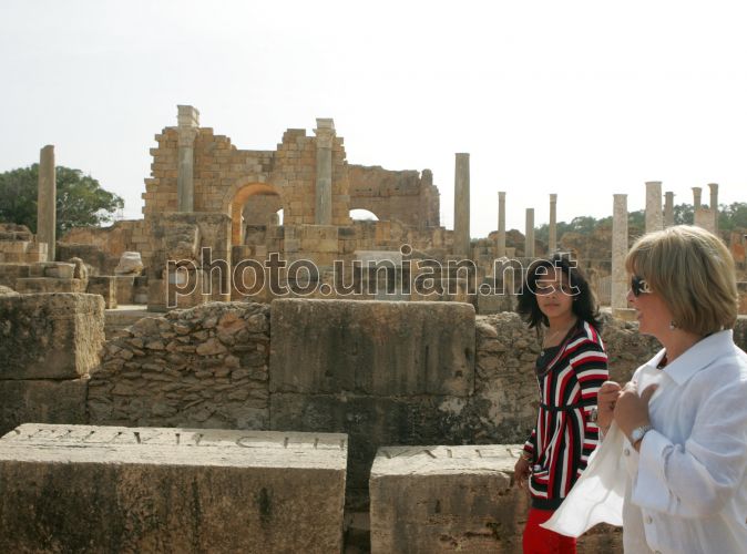 Председатель Наблюдательного совета Международного благотворительного фонда «Украина 3000» Екатерина Ющенко осматривает музейный комплекс, который находится на месте старинного римского города Лептис Магна в рамках рабочей поездки в Большую Социалистическую Народную Ливийскую Арабскую Джамагирию, в понедельник, 3 ноября 2008 г. Город расположен на месте поселения, основанного финикийцами в начале I тысячелетия к нашей эры. Фото Михаила Маркива / POOL / УНИАН