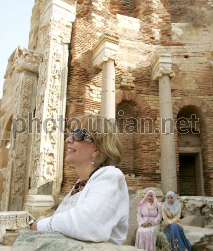 Председатель Наблюдательного совета Международного благотворительного фонда «Украина 3000» Екатерина Ющенко осматривает музейный комплекс, который находится на месте старинного римского города Лептис Магна в рамках рабочей поездки в Большую Социалистическую Народную Ливийскую Арабскую Джамагирию, в понедельник, 3 ноября 2008 г. Город расположен на месте поселения, основанного финикийцами в начале I тысячелетия к нашей эры. Фото Михаила Маркива / POOL / УНИАН