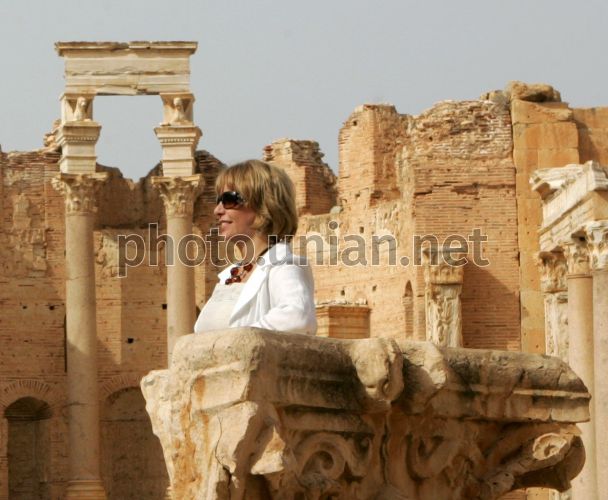 Председатель Наблюдательного совета Международного благотворительного фонда «Украина 3000» Екатерина Ющенко осматривает музейный комплекс, который находится на месте старинного римского города Лептис Магна в рамках рабочей поездки в Большую Социалистическую Народную Ливийскую Арабскую Джамагирию, в понедельник, 3 ноября 2008 г. Город расположен на месте поселения, основанного финикийцами в начале I тысячелетия к нашей эры. Фото Михаила Маркива / POOL / УНИАН