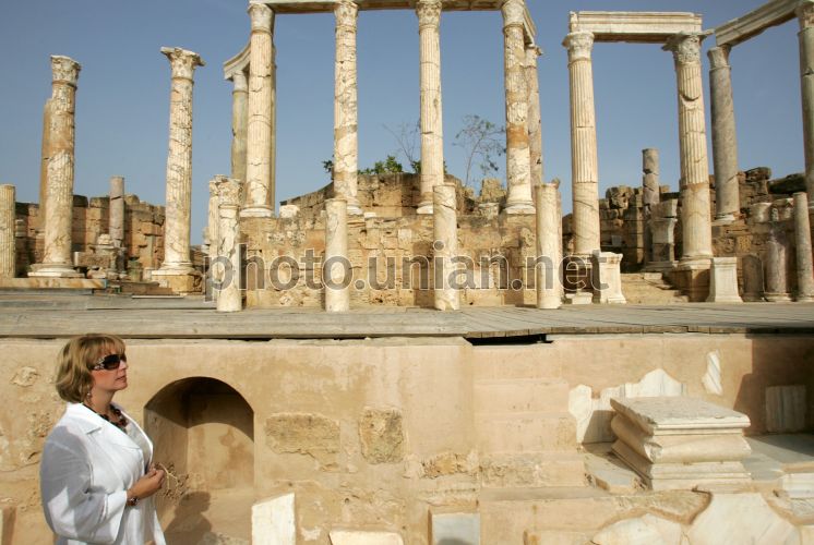 Председатель Наблюдательного совета Международного благотворительного фонда «Украина 3000» Екатерина Ющенко осматривает музейный комплекс, который находится на месте старинного римского города Лептис Магна в рамках рабочей поездки в Большую Социалистическую Народную Ливийскую Арабскую Джамагирию, в понедельник, 3 ноября 2008 г. Город расположен на месте поселения, основанного финикийцами в начале I тысячелетия к нашей эры. Фото Михаила Маркива / POOL / УНИАН