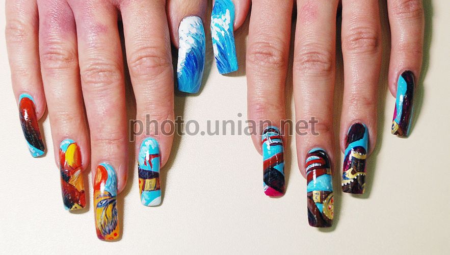Модель демонстрирует маникюр на ногтях во время Открытого Кубка Харькова по парикмахерскому искусству, ногтевой эстетике и макияжу ”Світ Краси-2008”, в Харькове, в пятницу, 28 ноября 2008 г. Фото Сергея Сивогракова / УНИАН