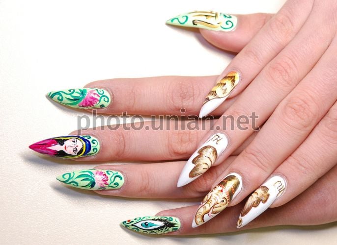 Модель демонстрирует маникюр на ногтях во время Открытого Кубка Харькова по парикмахерскому искусству, ногтевой эстетике и макияжу ”Світ Краси-2008”, в Харькове, в пятницу, 28 ноября 2008 г. Фото Сергея Сивогракова / УНИАН