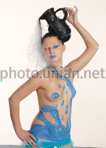 Модель позирует фотографам во время Открытого Кубка Харькова по парикмахерскому искусству, ногтевой эстетике и макияжу ”Світ Краси-2008”, в Харькове, в пятницу, 28 ноября 2008 г. Фото Сергея Сивогракова / УНИАН