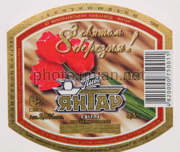 FILE Наклейка от пива Николаевского пивзавода "С праздником 8-го марта" из коллекции Алексея Ипатова, в Запорожье, в воскресенье, 30 ноября 2008 г. Алексей Ипатов собрал более 40 тысяч этикеток от пива из разных стран мира. Среди них 1200 этикеток запорожских пивоваров. Фото Александра Прилепы / УНИАН
