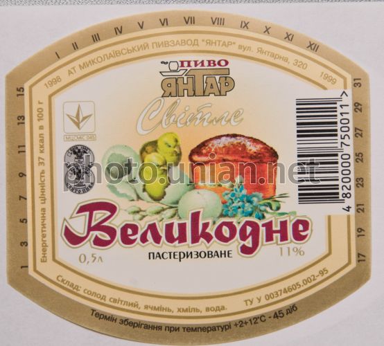 FILE Наклейка от пива Николаевского пивзавода ”Пасхальное” из коллекции Алексея Ипатова, в Запорожье, в воскресенье, 30 ноября 2008 г. Алексей Ипатов собрал более 40 тысяч этикеток от пива из разных стран мира. Среди них 1200 этикеток запорожских пивоваров. Фото Александра Прилепы / УНИАН