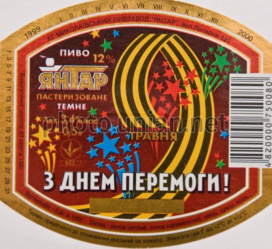 FILE Наклейка от пива Николаевского пивзавода ”С Днем Победы” из коллекции Алексея Ипатова, в Запорожье, в воскресенье, 30 ноября 2008 г. Алексей Ипатов собрал более 40 тысяч этикеток от пива из разных стран мира. Среди них 1200 этикеток запорожских пивоваров. Фото Александра Прилепы / УНИАН