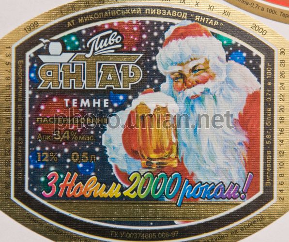 FILE Наклейка от пива Николаевского пивзавода ”С Новым 2000 годом” из коллекции Алексея Ипатова, в Запорожье, в воскресенье, 30 ноября 2008 г. Алексей Ипатов собрал более 40 тысяч этикеток от пива из разных стран мира. Среди них 1200 этикеток запорожских пивоваров. Фото Александра Прилепы / УНИАН