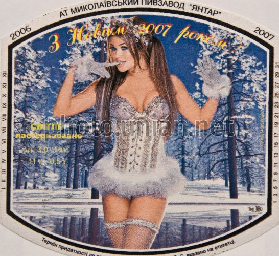 FILE Наклейка от пива Николаевского пивзавода ”С Новым 2007 годом” из коллекции Алексея Ипатова, в Запорожье, в воскресенье, 30 ноября 2008 г. Алексей Ипатов собрал более 40 тысяч этикеток от пива из разных стран мира. Среди них 1200 этикеток запорожских пивоваров. Фото Александра Прилепы / УНИАН
