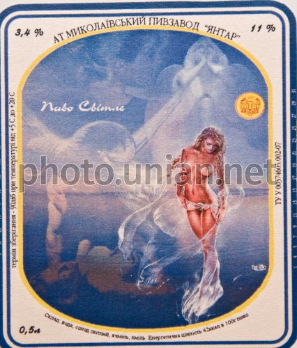 FILE Наклейка от пива Николаевского пивзавода из коллекции Алексея Ипатова, в Запорожье, в воскресенье, 30 ноября 2008 г. Алексей Ипатов собрал более 40 тысяч этикеток от пива из разных стран мира. Среди них 1200 этикеток запорожских пивоваров. Фото Александра Прилепы / УНИАН