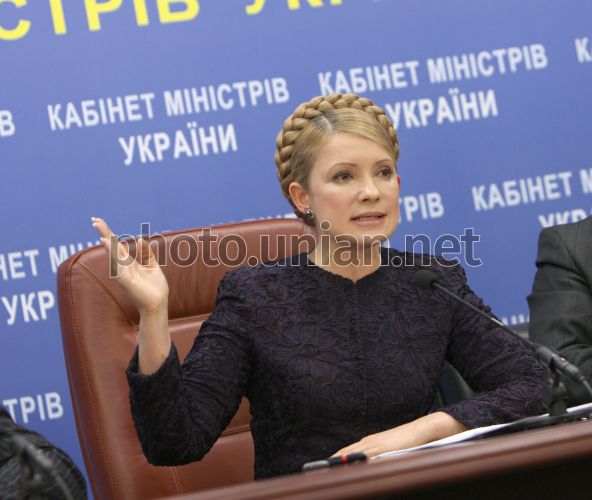 Премьер-министр Украины Юлия Тимошенко на брифинге в Кабинете Министров, в Киеве, в среду, 24 декабря 2008 г. В ходе брифинга Премьер-министр Украины заявила о том, что требует от Президента Украины срочного увольнения главы Национального банка Владимира Стельмаха из-за продолжения НБУ политики девальвации гривни. “Глава Национального банка Стельмах продолжает уничтожать гривню такими нелогичными интервенциями на валютный рынок. Именно поэтому я сейчас требую от Президента страны срочного увольнения главы Национального банка Стельмаха, срочного увольнения”, - подчеркнула Тимошенко. Премьер-министр убеждена, что в случае, если Ющенко не отреагирует на ее требование, то вся персональная ответственность за курсовую политику ложится на Президента Украины. “Это персональная ответственность Президента, и он должен отчитаться за это перед обществом”, - подчеркнула премьер. Тимошенко уверена, что замена председателя НБУ приведет к стабилизации курса гривни на уровне 6-6,5 грн. Фото Александра Прокопенко /POOL / УНИАН