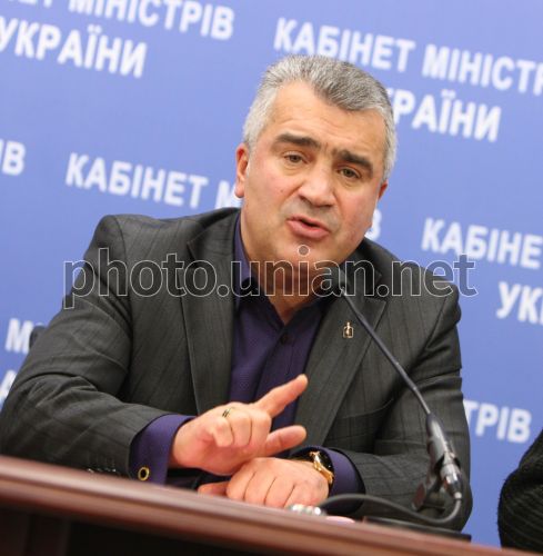 Председатель Всеукраинской ассоциации пекарей Владимир Слабовский на брифинге в Кабинете Министров, в Киеве, в среду, 24 декабря 2008 г. Хлебопеки заявляют о возможности остановки предприятий, если не будут решены вопросы погашения валютных кредитов по приемлемому курсу.«Если мы будем обслуживать кредиты по нынешнему курсу, не хватит денег ни на зарплату, ни на энергоресурсы, и предприятия просто остановятся», - заявил Слабовский. По его словам, хлебопекарные предприятия были вынуждены брать кредиты летом в валюте на приобретение зерна до нового урожая, поскольку кредитов в гривне банки не предлагали. Сегодня, по словам президента Ассоциации хлебопеков, только одно предприятие - «Одесский каравай» - должно заплатить по кредиту 25 млн. грн. курсовой разницы. Слабовский также отметил, что, начиная с января 2009 года, банки обещают насчитывать штрафные проценты за непогашенные кредиты, при этом за первый месяц на уровне 38% годовых в валюте. В этот день представители хлебопекарных предприятий из всех регионов Украины провели пикетирование Дома правительства. Фото Александра Прокопенко /POOL / УНИАН