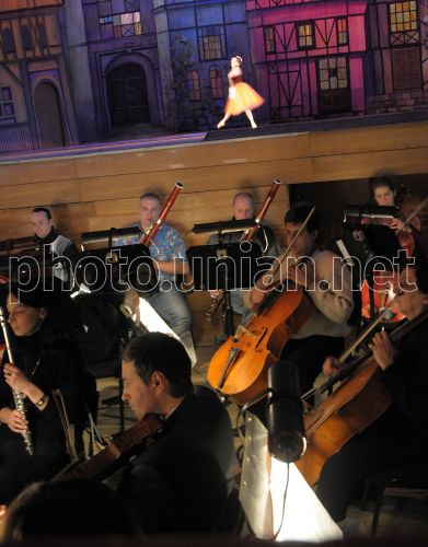 Музыканты оркестра Харьковского академического театра оперы и балета им. М.В. Лысенко во время репетиции балетного спектакля "Коппелия", в Харькове, в понедельник, 22 декабря 2008 г. Труппа ХАТОБа (Харьковского академического театра оперы и балета) 8 января 2009 г. отправится на гастроли в Великобританию. Балетная группа покажет спектакли "Лебединое озеро" и "Коппелия" в 24 городах Великобритании, в частности, в Манчестере, Эдинбурге и Ливерпуле. Фото Владимира Андреева / УНИАН