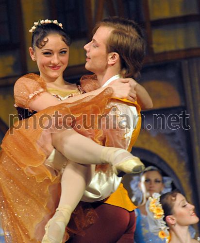 Актеры танцуют на сцене Харьковского академического театра оперы и балета им. М. В. Лысенко во время репетиции балетного спектакля ”Коппелия”, в Харькове, в понедельник, 22 декабря 2008 г. Труппа ХАТОБа (Харьковского академического театра оперы и балета) 8 января 2009 г. отправится на гастроли в Великобританию. Балетная группа покажет спектакли ”Лебединое озеро” и ”Коппелия” в 24 городах Великобритании, в частности, в Манчестере, Эдинбурге и Ливерпуле. Фото Владимира Андреева / УНИАН