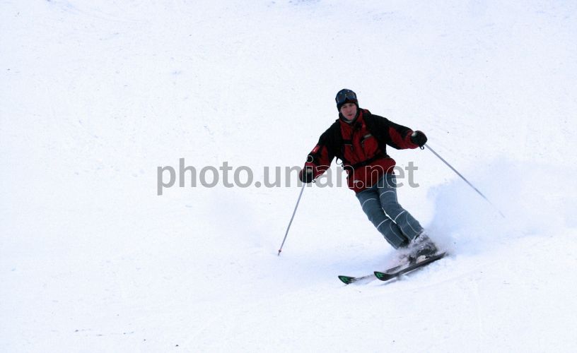 Лыжник спускается по склону горы Грабовец недалеко от Славска в субботу, 10 января 2009 р. Фото Петра Задорожного / УНИАН
