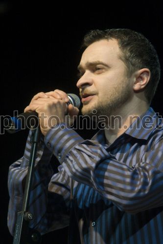 Участник вокального коллектива ”Пиккардийская терция”, львовский вокалист Славко Нудык во время сольного концерта коллектива, в Киеве, в воскресенье, 18 января 2009 г. Один из известных вокальных коллективов Украины, ”Пиккардийская терция”, дал сольный концерт, представляя свой новый альбом ”Этюды”. Фото УНИАН