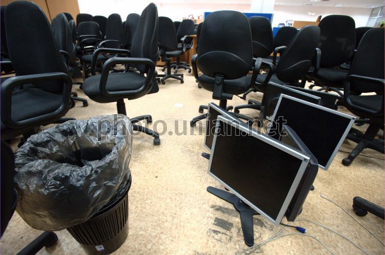 Пустые рабочие места в одном из офисов, в Киеве, в понедельник, 16 февраля 2009 г. В Украине на сегодня официально зарегистрировано уже 932 тыс. безработных. К концу года их количество может вырасти в три раза, прогнозируют в Государственном центре занятости. 3 млн. 200 тыс. безработных – это почти 9% активного населения страны. По расчетам Центра, для такого количества безработных на выплату пособия потребуется почти 5 млрд. грн. В Государственном центре занятости утверждают, что деньги есть и хватит их всем. Между тем в Центре с оптимизмом смотрят в будущее, даже отметили позитивную тенденцию: говорят, с каждым днем в Украине регистрируется все меньше людей, потерявших работу. В декабре 2008-го в центры занятости ежедневно обращалось по 7 тыс. человек, теперь - всего тысяча. Фото Макса Левина / УНИАН
