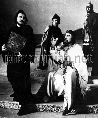 Репродукция фотографии из архива Запорожского академического областного музыкально-драматического театра имени В.Г.Магара, на которой изображена сцена из спектакля ”Ярослав Мудрый” , в четверг, 5 марта 2009 г. В этот день Запорожскому академическому областному музыкально-драматическому театру имени В.Г.Магара исполнилось 80 лет. С 1936 по 1965 год театр возглавлял Владимир Герасимович Магара. Фото УНИАН