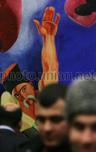 Участники торжественных мероприятий, посвященный рождению Пророка Мухаммада, организованных Духовным управлением мусульман Украины, в оном из отелей, в Киеве, в четверг, 19 марта 2009 г. У мусульман всего мира месяц март отмечается как месяц Мавлюд – рождение Пророка. В течение месяца мусульмане проводят чтения, конференции, круглые столы, где рассказывается о жизни и деятельности Пророка Мухаммада. Дня рождения Пророка Мухаммада считается одним из главных мусульманских праздников. Мероприятия, посвященные Мавлюду, проходят по всей территории Украины. В Коране подчеркивается, что Мухаммад (да благословит его Аллах и приветствует) - последний посланник Бога. Фото Владимира Гонтара / УНИАН