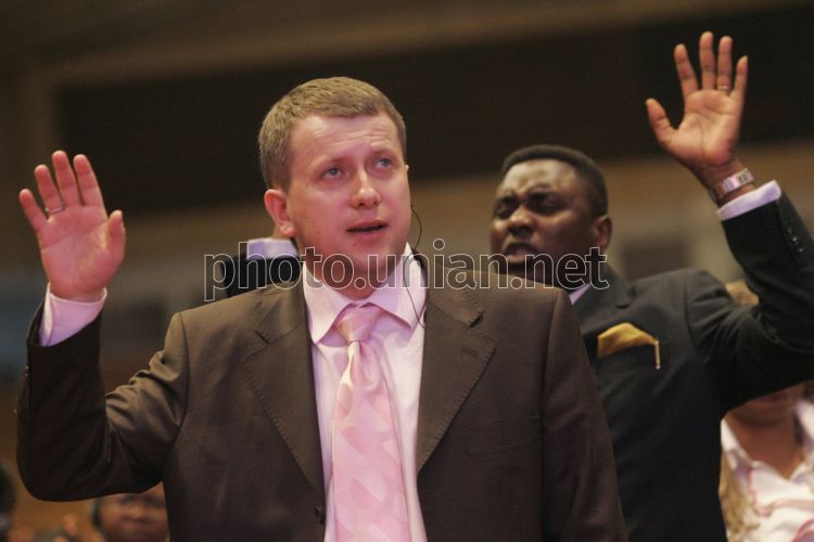 Прихожане церкви «Посольство Божье» во время празднования 15-й годовщины церкви, в Киеве, в четверг, 2 апреля 2008 г. Фото Андрея Глазкова / УНИАН