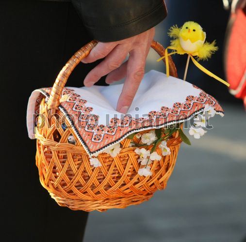 Местный житель держит пасхальную корзину, покрытую, по традиции, вышитым рушничком, во Львове, в субботу, 18 апреля 2009 г. 19 апреля 2009 г. весь православный мир отмечает праздник Пасхи - праздник Светлого Христова Воскресения - главное событие года для христиан и самый большой религиозный праздник. Согласно Новому завету, Спаситель воскрес на третий день после смерти на Кресте во искупление человеческих грехов. Фото УНИАН