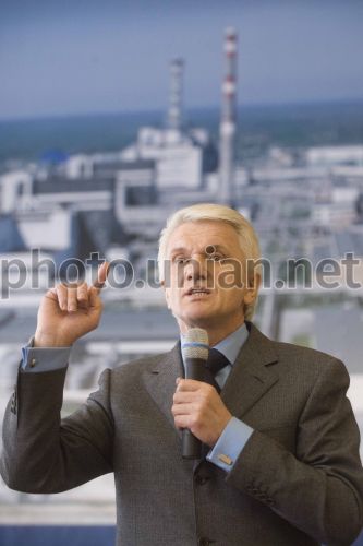 Председатель Верховной Рады Украины Владимир Литвин выступает во время пресс-конференции в административно-строительном комплексе ГСП "ЧАЭС" в Чернобыле, в среду, 22 апреля 2009 г. В этот день Литвин осуществил рабочую поездку в Чернобыльскую зону. Он принял участие в церемонии возложения цветов к памятникам погибшим работникам ЧАЭС, ознакомился с состоянием строительства заводов по переработке жидких радиоактивных отходов, а также с состоянием завершения строительства промышленного комплекса по переработке твердых радиоактивных отходов. В воскресенье, 26 апреля 2009 г. исполняется 23 года со дня аварии на Чернобыльской АЭС. Фото Анастасии Сироткиной / POOL / УНИАН