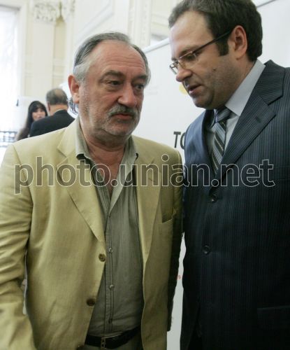 Президент первого Киевского Международного Кинофестиваля, народный артист Украины Богдан Ступка, слева, и генеральный продюсер фестиваля Федор Крат на открытии, в Киеве, в пятницу, 29 мая 2009 г. В конкурсной и внеконкурсной программе фестиваля участвуют 37 фильмов из более чем 25 стран. В том числе за победу в конкурсе будут бороться два украинских фильма - ”Таинственный остров” режиссера Владимира Тихого и ”Контракт” Веры Яковенко. Кинофестиваль пройдет с 29 мая по 3 июня. Планируется, что фестиваль станет ежегодным и будет проводиться в Киеве в конце мая - начале июня. Фото Владимира Гонтара / УНИАН