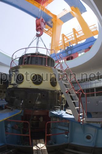 Турбина на Киевской ГАЭС в Вышгороде (Киевская обл.), в среду, 1 июля 2009 г. В этот день прошла пресс-конференция относительно вопросов производства и снабжения электроэнергии в Украине, последних новостей отрасли и аспектов реализации Проекта реабилитации гидроэлектростанций. Основными заданиями Проекта реабилитации гидроэлектростанции является повышение надежности, эффективности и безопасности функционирования гидротехнических сооружений и оборудования ”Укргидроэнерго” и улучшение их экологических показателей. Последнее задание будет выполняться благодаря сокращению выбросов парниковых газов, установлению роторов гидротурбин, которые не загрязняют окружающую среду, а также устранению оттека нефтепродуктов в реки Днепр и Днестр. Проект поможет повысить установленные мощности гидроэлектростанций Днепровского и Днестровского каскадов приблизительно на 400 МВт и выработанный ими объем электроэнергии приблизительно на 500 ГВт-час. Фото Сергея Светлицкого / УНИАН
