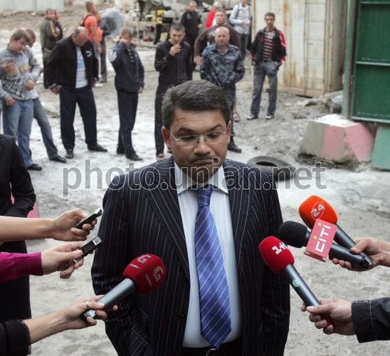 Народный депутат от фракции ”НУ-НС” Кирилл Куликов отвечает на вопросы журналистов возле стройплощадки по ул. Гончара, в Киеве, во вторник, 14 июля 2009 г. В этот день возле стройплощадки по ул. Гончара 17-23, где планируется возвести торгово-развлекательный комплекс, собрались жители микрорайона, прилегающего к строительству, также присутствовал народный депутат от НУНС Кирилл Куликов. Инициативная группа жителей демонтировала забор, открыв путь на строительство. По нескольким решениям судов эта стройка признана незаконной, но она не прекратила работу, поэтому киевляне решили сами снести забор и тем самым приостановить незаконную стройку. Фото Владимира Гонтара / УНИАН