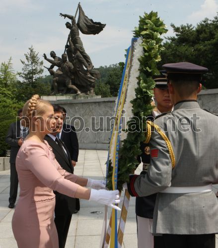 Премьер-министр Украины Юлия Тимошенко во время возложения цветов к Монументу погибшим за Корею в Сеуле (Южная Корея), в четверг, 16 июля 2009 г. Премьер будет пребывать в Республике Корея с официальным визитом до 17 июля 2009 г. Фото Александра Прокопенко / POOL / УНИАН