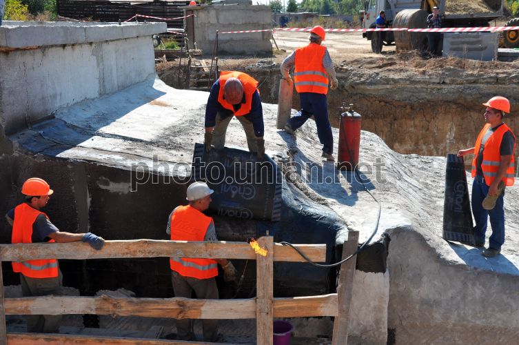 Рабочие на строительстве станции метро «Алексеевская», в Харькове, 16 сентября 2009 г. В этот день возобновились строительно-монтажные работы на станции "Алексеевская" харьковского метро. Строительство не велось около года и в ближайшие дни будет изучено состояние тоннелей. сейчас на станции работает около 100 человек. Фото Игоря Чекачкова / УНИАН