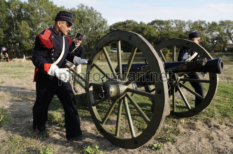 Участник военно-исторической реконструкции боя под названием «Альминские высоты», посвященной 155-летию Альминского сражения, одетый форму британского бойца, заряжает пушку во время репетиции в Бахчисарае (Крым), в субботу, 19 сентября 2009 г. Реконструкция боя проходила на берегу реки Альма, возле восстановленного моста через реку. Место Альминского сражения - место для военных реконструкторов культовое. На этом месте свершилась битва - предвестница героической Севастопольской страды. Именно на Альминском поле впервые скрестили штыки русские и британские войска. Альминское сражение - это первое крупное сражение Крымской войны 1853 - 1856 годов. Оно состоялось в сентябре 1854 года между войсками коалиции Великобритании, Франции и Турции с одной стороны, и России - с другой. Победу в Альминском сражении одержали войска коалиции. Военно-историческая реконструкция Альминского сражения продлится до 21 сентября. Фото Андрея Любимова / УНИАН