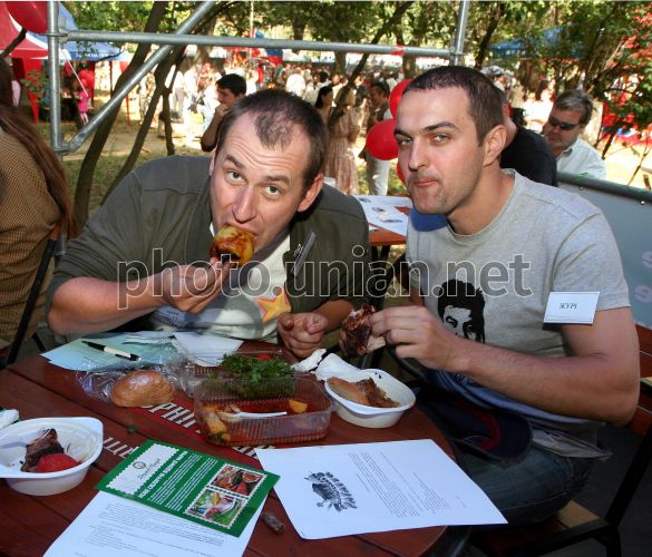 Члены жюри дегустируют блюда на первом фестивале кулинарного искусства ”Карпатский рататуй” в Ужгороде (Закарпатская обл.), в субботу, 19 сентября 2009 г. В этот день в Ужгороде при участии 10 команд (6 человек в каждой) состоялся первый гастрономический фестиваль ”Карпатский рататуй”. Каждая команда должна была приготовить ”Бограч-гуляш”, блюда из свинины и баранины, и конечно, рататуй. Работу команд оценивало независимое жюри из почти 50 человек. В рамках фестиваля свое мастерство также продемонстрировали кузнецы, гончары и музыканты. Фото Яноша Немеша / УНИАН