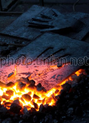 Металлическая пластина, на которой вырезан контур руки, лежит на огне во время проведения III фестиваля кузнечного искусства ”Железный Лев - 2009”, во Львове, в пятницу, 16 октября 2009 г. В фестивале принимают участие 50 кузнецов из всех регионов Украины. Основная цель мероприятия – обмен опытом между кузнецами и популяризация кузнечества как разновидности искусства. На фестивале поставлено требование ко всем участникам - минимизировать использование технических средств. Все будет делаться вручную - с помощью горна, молота и наковальни. В рамках фестиваля также пройдет выставка кузнечных работ и научно-практическая конференция ”Художественный металл Украины: прошлое, современное, будущее”. Фестиваль будет длиться до 18 октября. Фото Петра Задорожного / УНИАН