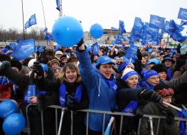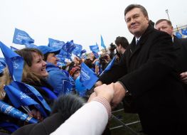 Жительница Вознесенска, Николаевской обл., держит портрет Виктора Януковича во время встречи с кандидатом на пост Президента Украины, лидером Партии регионов, во вторник, 15 декабря 2009 г. Фото Андрея Мосиенко / POOL / УНИАН