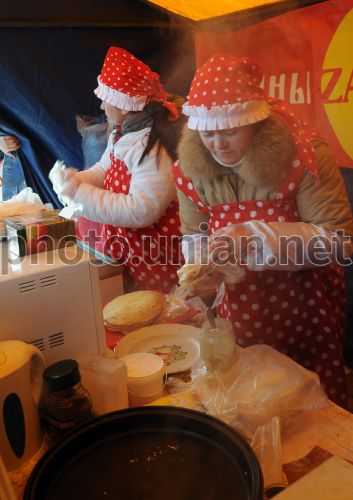 Женщины готовят блины во время городской ярмарки, посвященная празднованию Масленицы, в Харькове, в пятницу, 12 февраля 2010 г. Масляная (Масленицы, Масленица, сырное воскресенье) – древнеславянский праздник в честь весеннего пробуждения природы. После крещения Руси Масленица празднуется в последнюю неделю перед Великим постом, за семь недель до Пасхи. Главными атрибутами праздника являются блины и народные гуляния. Христианская церковь включила Масленицу в свой календарь, однако она так и не приобрела религиозного содержания. Фото Владимира Андреева / УНИАН