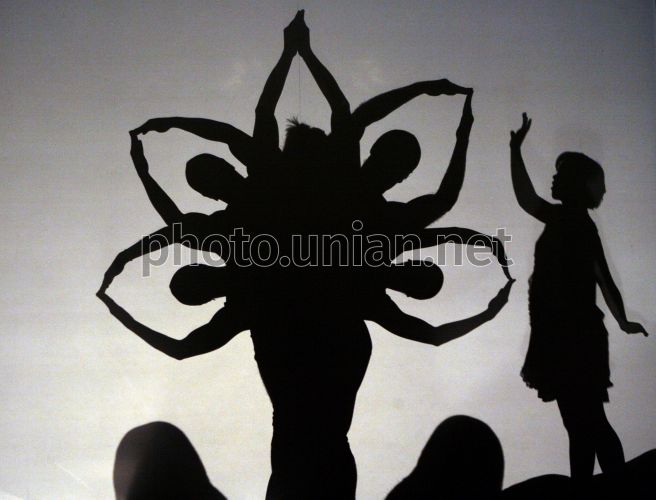 Актеры театра теней ”Пилоболус” (”Pilobolus”, США) с одной из своих программ ”Страна теней” (”Shadowland”) во время репетиции, в Киеве, во вторник, 23 февраля 2010 г. Shadowland - синтез театра теней (игра света и тени), танца, цирка и шоу, созданное Pilobolus после нескольких лет экспериментов с тенью. Шоу Shadowland использует несколько движущихся экранов разных размеров и форм для показа перевоплощения образов на экране и хореографию перед экранами. Фото Андрея Скакодуба / УНИАН