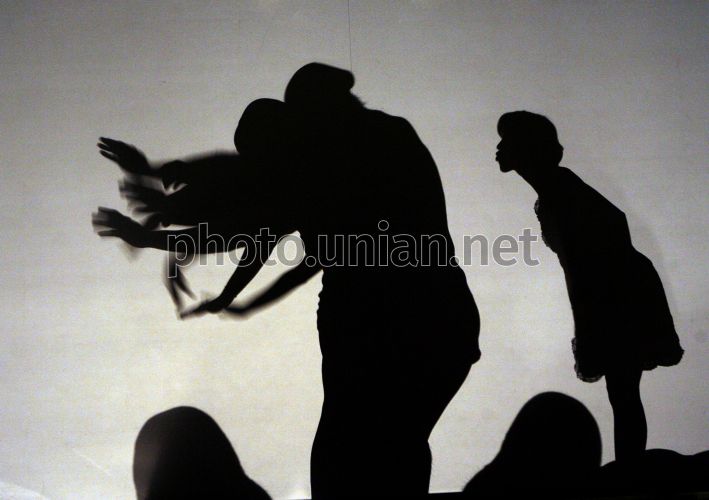Актеры театра теней ”Пилоболус” (”Pilobolus”, США) с одной из своих программ ”Страна теней” (”Shadowland”) во время репетиции, в Киеве, во вторник, 23 февраля 2010 г. Shadowland - синтез театра теней (игра света и тени), танца, цирка и шоу, созданное Pilobolus после нескольких лет экспериментов с тенью. Шоу Shadowland использует несколько движущихся экранов разных размеров и форм для показа перевоплощения образов на экране и хореографию перед экранами. Фото Андрея Скакодуба / УНИАН