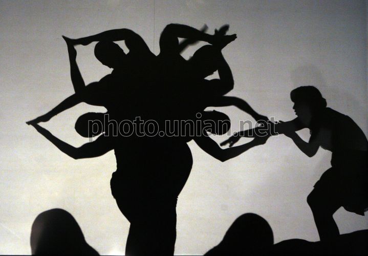 Актеры театра теней ”Пилоболус” (”Pilobolus”, США) с одной из своих программ ”Страна теней” (”Shadowland”) во время репетиции, в Киеве, во вторник, 23 февраля 2010 г. Shadowland - синтез театра теней (игра света и тени), танца, цирка и шоу, созданное Pilobolus после нескольких лет экспериментов с тенью. Шоу Shadowland использует несколько движущихся экранов разных размеров и форм для показа перевоплощения образов на экране и хореографию перед экранами. Фото Андрея Скакодуба / УНИАН