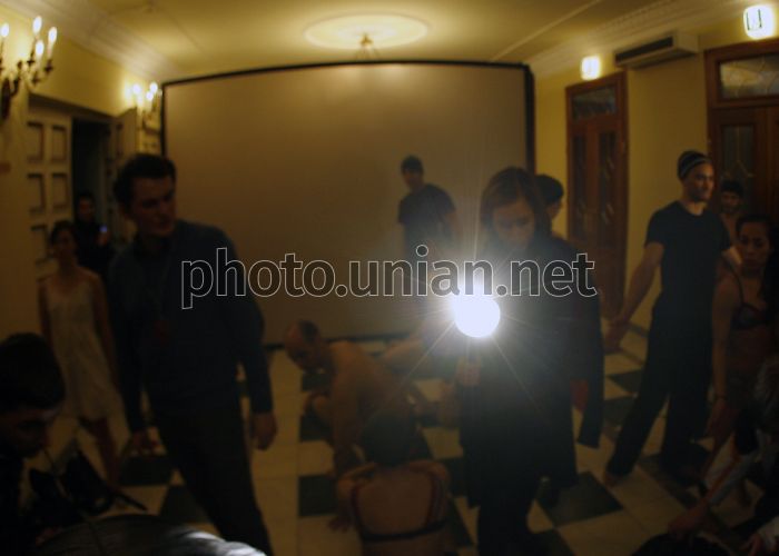 Актеры театра теней ”Пилоболус” (”Pilobolus”, США) во время репетиции, в Киеве, во вторник, 23 февраля 2010 г. Фото Андрея Скакодуба / УНИАН