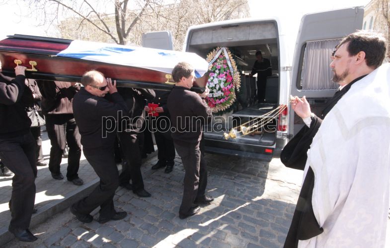 Участники церемонии похорон капитана первого ранга Черноморского флота России Виктора Гинькута, погибшего 29 марта в результате теракта в Москве на станции метро ”Парк культуры”, несут гроб в Севастополе (Крым), в пятницу, 2 апреля 2010 г. Погибший имел также российское гражданства. Ввиду того, что украинское законодательство не предусматривает двойного гражданства, консульство рассматривает его как гражданина Украины. 29 марта в московском метрополитене произошли взрывы на станциях “Лубянка” и “Парк культуры”. В результате взрывов погибли 39 человек. Фото Алексея Сувирова / УНИАН