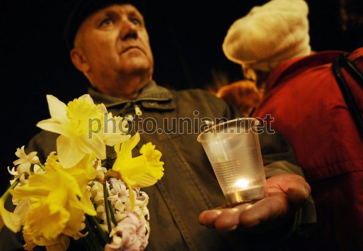 Мужчина держит зажженную свечу во время акции в память о жертвах террористических актов в московском метро на площади Нахимова, в Севастополе, во вторник, 6 апреля 2010 г. В понедельник, 29 марта 2010 г. около 07.55 и 08.40 на двух станциях линии московского метро - Сокольнической произошли взрывы: на ”Лубянке” взрыв произошел во втором вагоне от головы поезда, на ”Парке культуры” - в пятом вагоне от хвоста поезда. Взрывы совершили террористки-смертницы. Число погибших в результате терактов в московском метро - 40 человек. Ранения и травмы при взрывах получили свыше 80 человек. В результате терактов в московском метро погиб также житель Севастополя. Фото Андрея Любимова / УНИАН
