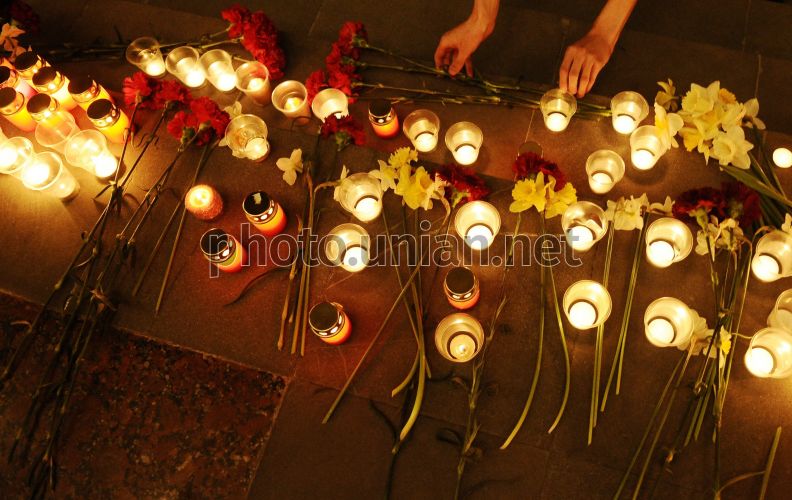 Горящие свечи во время акции ”Зажги свечу памяти” в память о жертвах террористических актов в московском метро на площади Нахимова, в Севастополе, во вторник, 6 апреля 2010 г. В понедельник, 29 марта 2010 г. около 07.55 и 08.40 на двух станциях линии московского метро - Сокольнической произошли взрывы: на ”Лубянке” взрыв произошел во втором вагоне от головы поезда, на ”Парке культуры” - в пятом вагоне от хвоста поезда. Взрывы совершили террористки-смертницы. Число погибших в результате терактов в московском метро - 40 человек. Ранения и травмы при взрывах получили свыше 80 человек. В результате терактов в московском метро погиб также житель Севастополя. Фото Андрея Любимова / УНИАН