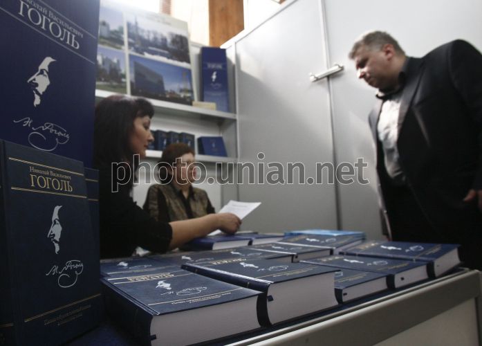 Собрания сочинений писателя Николая Гоголя на V Весенней книжной ярмарке-фестивале в Киеве, в четверг, 8 апреля 2010 г. В рамках книжной ярмарки, которая проходит с 8 по 11 апреля, состоится международная ассамблея фантастики "Портал", международный фестиваль христианской книги и первая специальная международная экспозиция спортивной книги. Фото Сергея Светлицкого / УНИАН