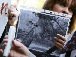 Девушка держит в руках фотографию погибшего в Киевском зоопарке жирафа по кличке Рами во время проведения акции протеста против жестокого отношения к животным в Киевском зоопарке, рядом со зданием КГГА в Киеве, в пятницу, 30 апреля 2010 р. В память о слоне Бое и других погибших в зоопарке животных состоялся перформанс с живым исполнением траурной музыки. 26 апреля в Киевском зоопарке умер 39-летний слон Бой. Фото Владимира Гонтара / УНИАН